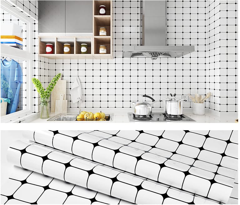Kitchen Wallpaper Peel and Stick Wallpaper backslash Tile Wallpaper Waterproof Self Adhesive Removable Wallpaper for Kitchen Bathroom Laundry Room Shelf Drawer Liner (Vinyl)